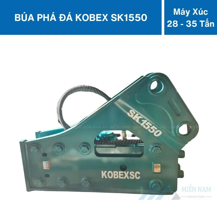 Búa phá đá SK1550 (búa phá đá Kobex SK1550) là thiết bị thủy lực hạng nặng lý tưởng cho các công trình xây dựng và khai thác quy mô lớn. Với khả năng lắp đặt trên máy đào 28–35 tấn, lực công phá mạnh mẽ, độ bền vượt trội cùng bộ phụ kiện đầy đủ, SK1550 mang đến hiệu quả thi công cao và tiết kiệm chi phí cho doanh nghiệp.